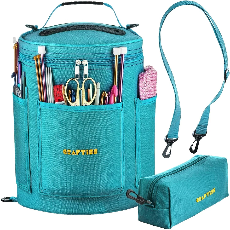 Bolsa de punto, bolsa de ganchillo de gran capacidad organizadora de almacenamiento de hilo portátil